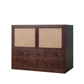 2022年度 第47回 全国伝統的工芸品 公募展 日本伝統工芸士会会長賞 受賞 前面タモ杢、キハダ材 拭漆仕上げ 三つ重ね W800×D350×H1170 -