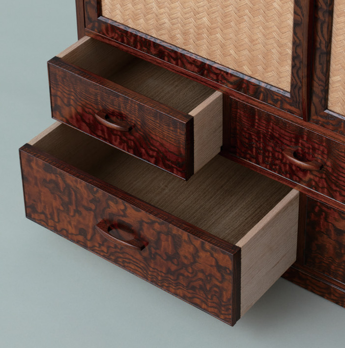 98 手許箪笥 2026 3/01 箪笥 タモ材拭漆仕上 開戸板、タモ柾アジロ編み W605×D350×H480 令和7年 東京都伝統工芸士会新作コンクール 東京都振興公社理事長賞受賞 箪笥 ケヤキ材・拭漆 URLをコピーしました! URLをコピーしました! 97-キーBOX 関連記事 50-小箪笥 70-いろは箪笥 34- 巴 手元箪笥 85-屋久杉 大黒柱 87-隅棚 36-入子箪笥 62-桐箪笥 73-小タンス(大黒柱)